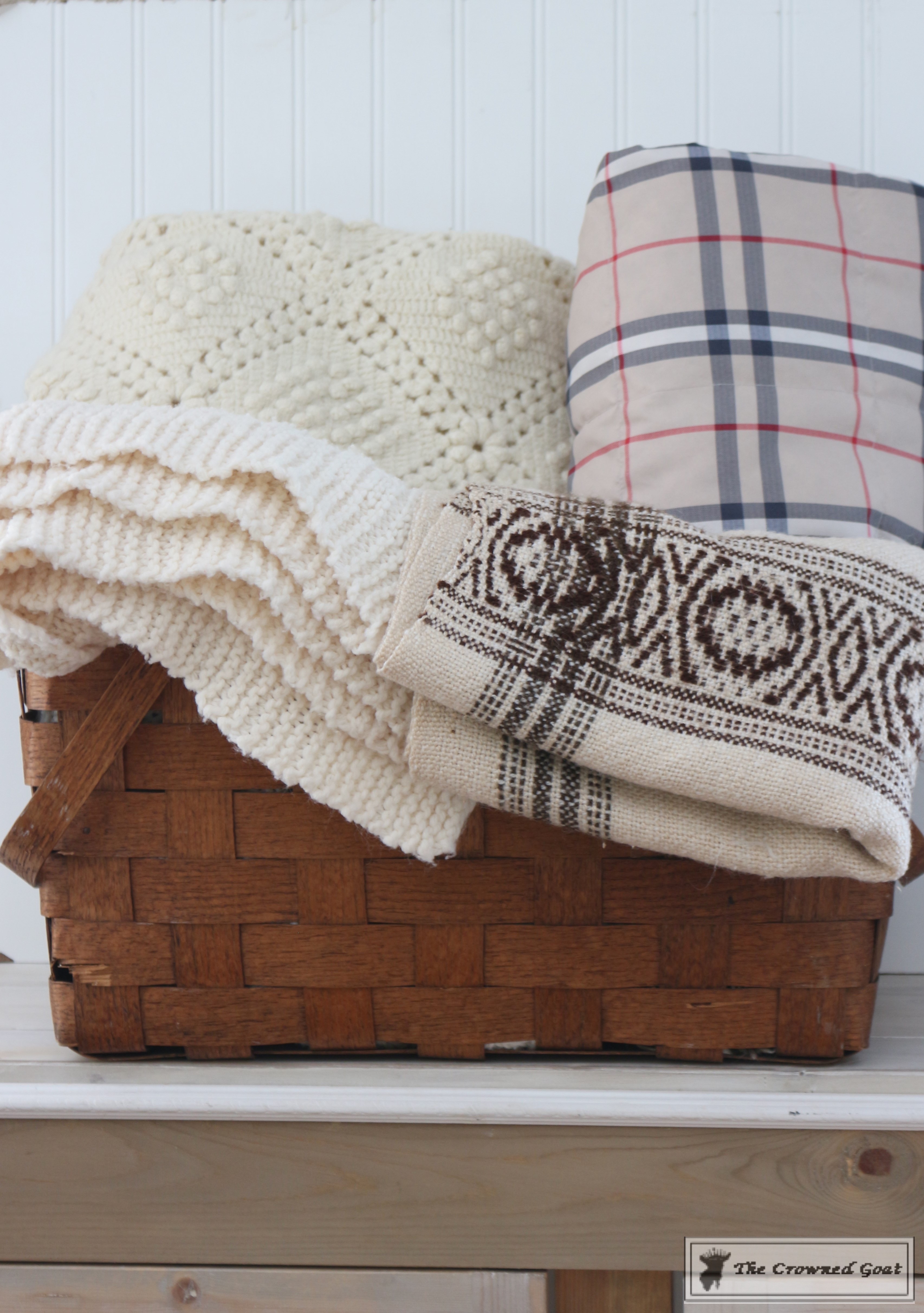 Collect and Launder Seasonal Blankets – We usually keep our warm blankets on the top shelf of the closet because we don’t use them until late October or early November. Even though you may not need them for snuggling by the fire right away, they can add a pop of color to cozy chairs and comfy couches.