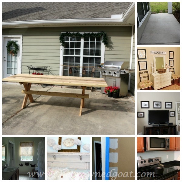 When I look back on my home goals from last year, I’m totally excited about all we accomplished. The front porch, back patio area, kitchen, living room, two of the bedrooms and two of the bathrooms got makeovers. Here’s a look at how these areas started in January of 2015