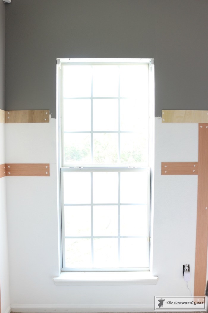 This is the window before the easy upgrade. The sides are normally covered with curtains so framing them wasn’t really a priority but once the board and batten went up the windows seemed a little bare.