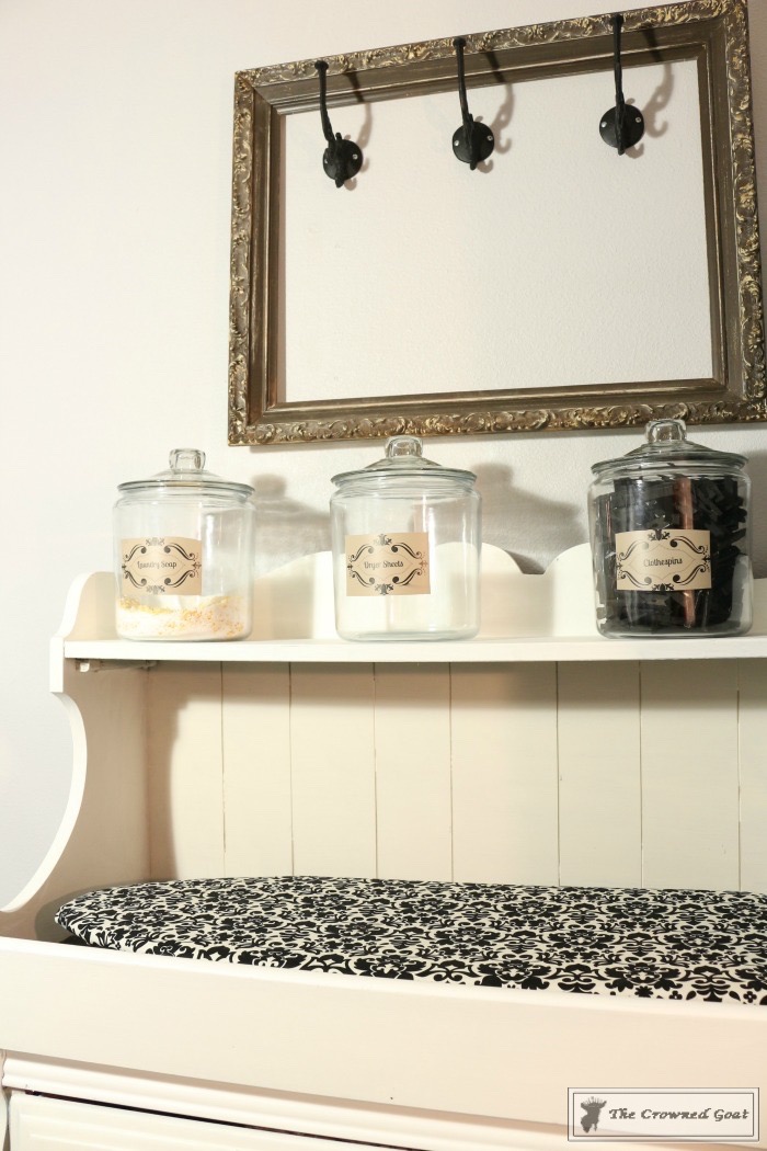 Develop a container and labeling system – You may have already figured this out but we’re big believers in decanting things in clear containers around here. It’s an easy way to see what you have and what you need. Guess who is currently out of dryer sheets? These jars can be purchased at most big box stores and the labels can be made using Pic Monkey and contact paper.
