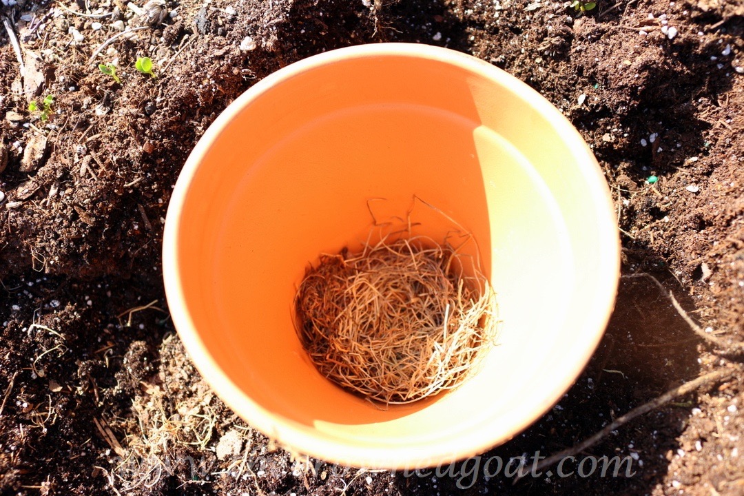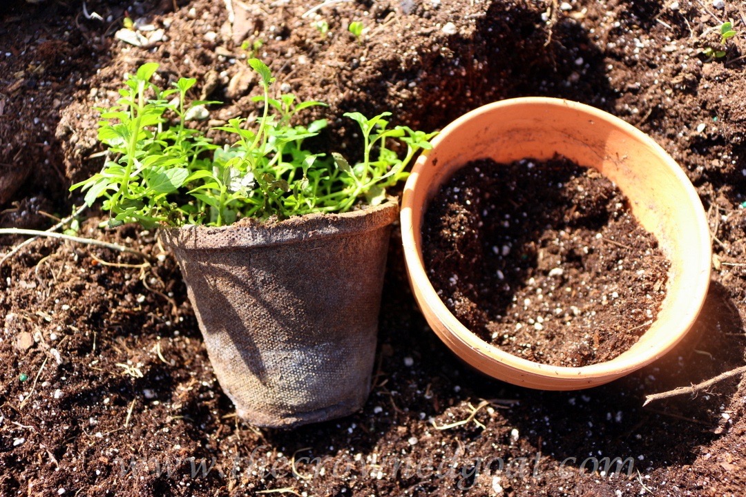 Proper Drainage is Key – make sure your container has a hole in the bottom and drains well. This means putting thick moss, gravel, small river rocks or Styrofoam peanuts in the bottom for optimum drainage. Herbs do not like their feet to be wet and poor draining soil can lead to root rot.