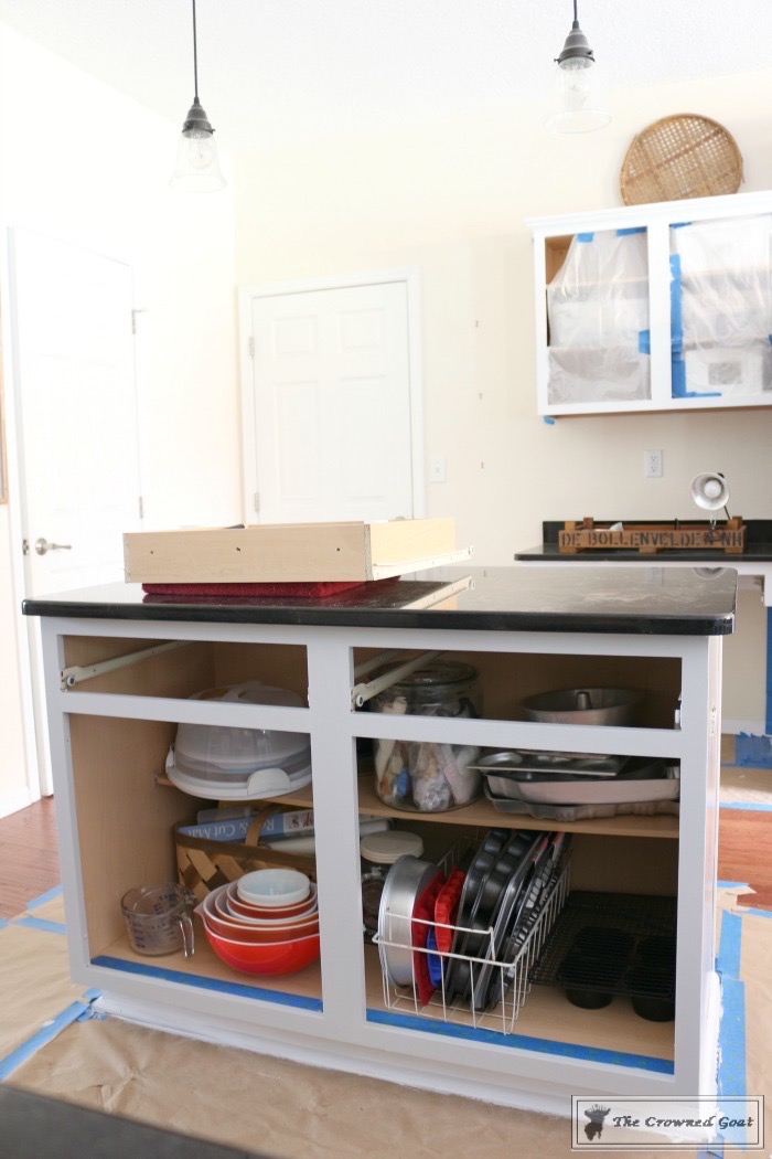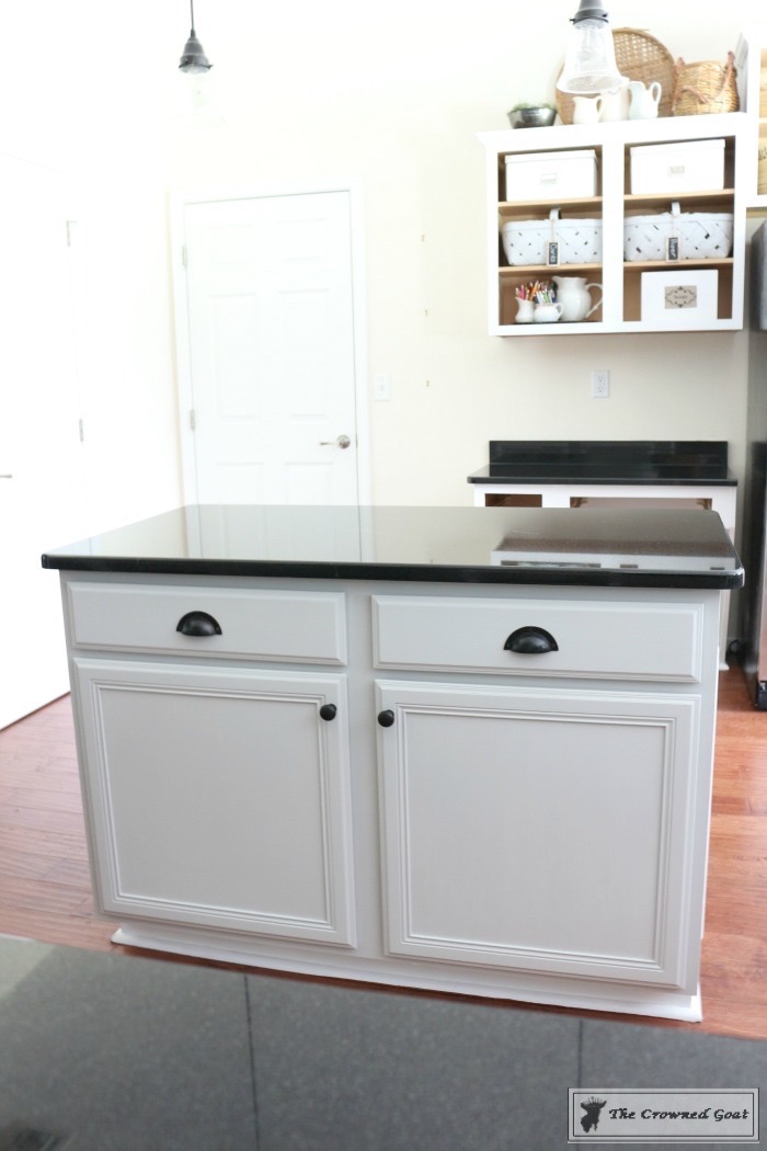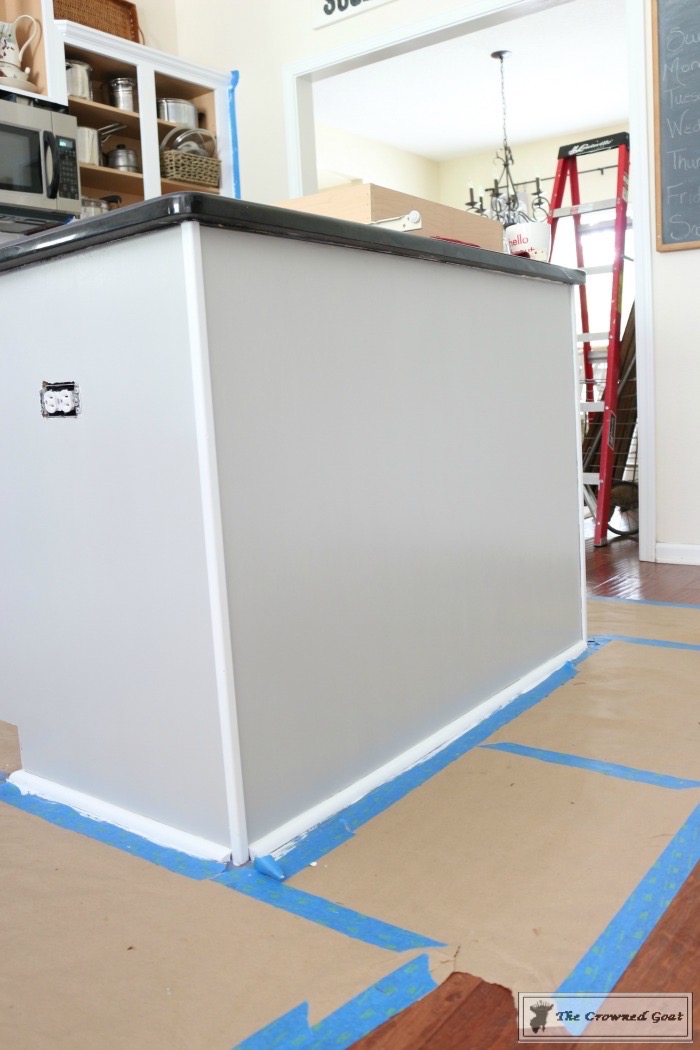 If you have one, use the same method to paint the kick plate on the base of the kitchen island cabinet.