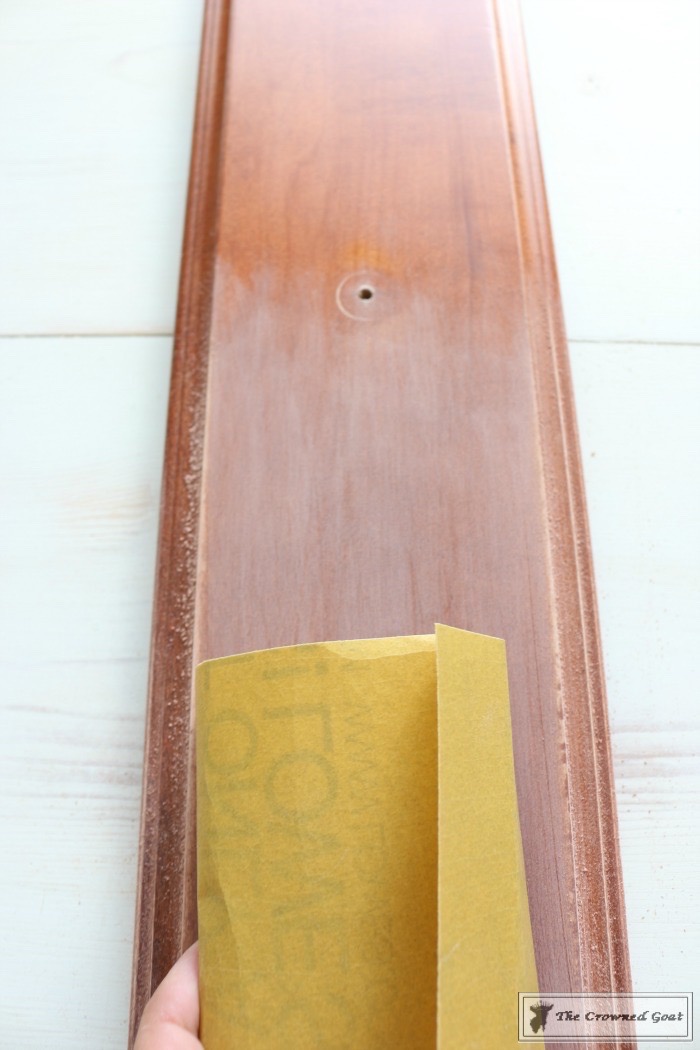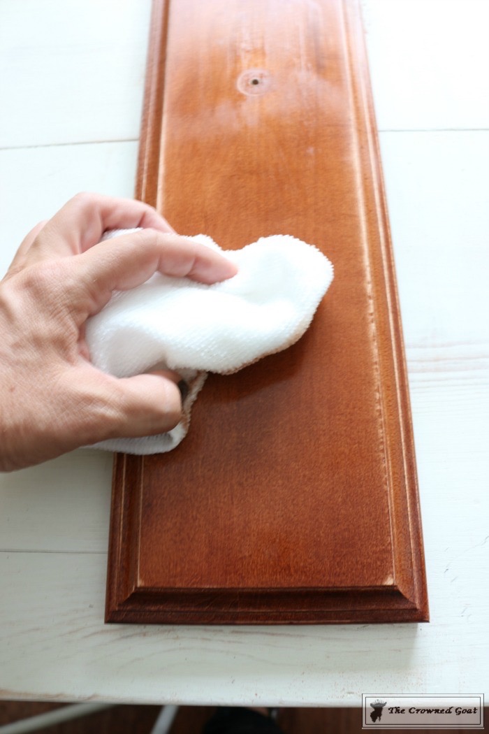then use a damp cloth (not wet) to wipe down all the wood surfaces again. You’ll want to make sure they’re free from any sanding dust or debris.
