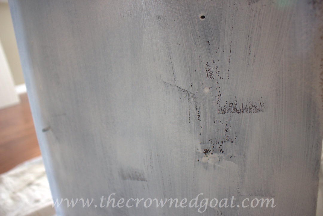 If you see any bubbling like this, it means you haven’t sanded enough and the primer/paint will not adhere. If it’s not a large area, try spot sanding and reapply the coat of primer to the spot. If it’s a large area, you’ll want to sand completely again prior to painting. I know sanding is a pain, but believe me, so is redoing a piece two or three times because you can’t get the paint to stick. You know what I mean?