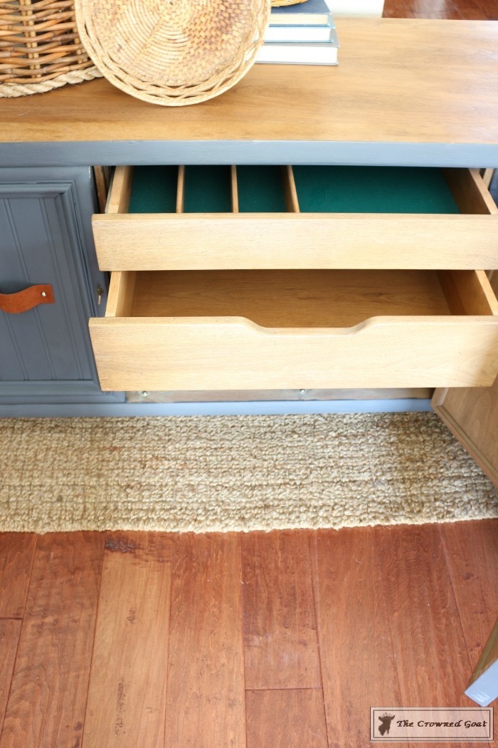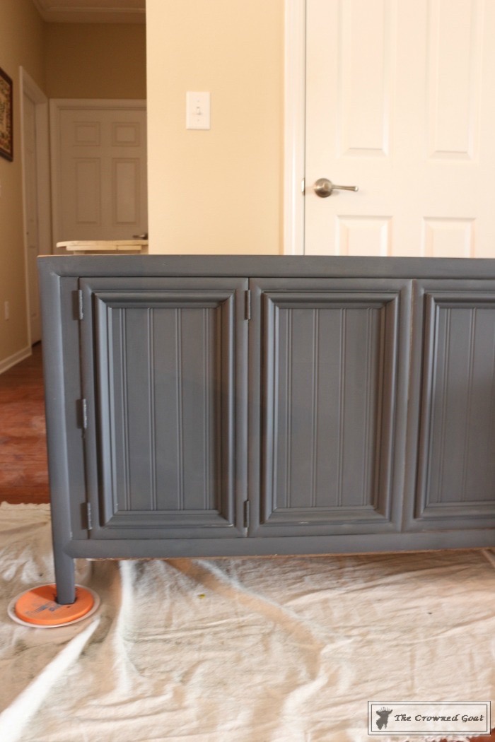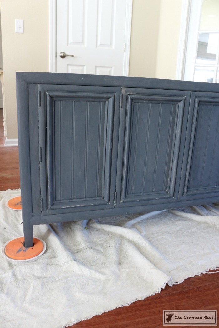 Things were really started to take shape on the body of the console. This is after two coats of paint. You can see how the color goes from navy to darker gray as the light in the room changes so keep that in mind if you chose a color like this.
