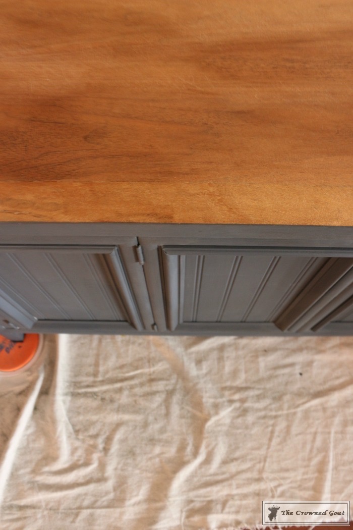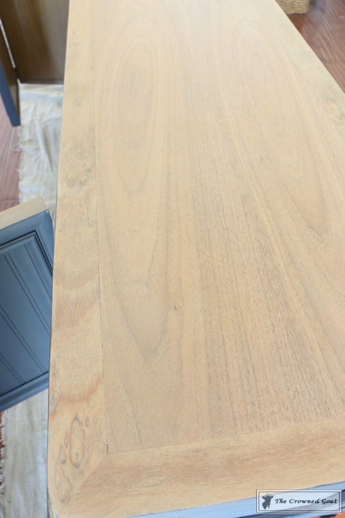 Then I had to sand down the top because we decided in advance to keep the wood grain textures consistent with the pieces they already have in the house. 3 layers of paint and a huge mess later…the wood grain was gorgeous.
