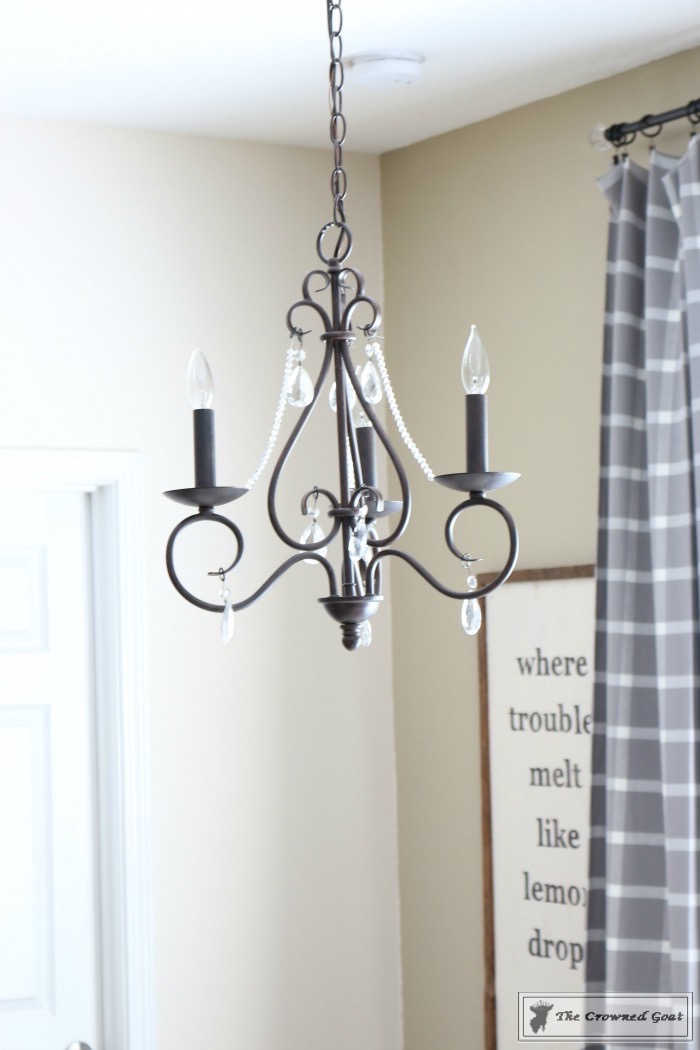 After all of these items were in place the chandelier seemed a bit too simple so I added a mix of new and antique crystals to jazz it up just a bit. You can read about that process here.
