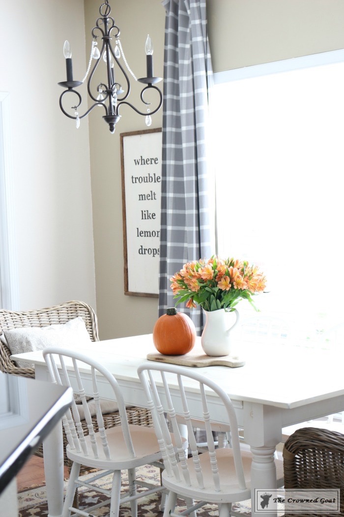 The final touch we needed to add to the breakfast nook was an element of wood. This piece has been used in the home office for a few years now so we decided to try it out in the breakfast nook. It definitely brought some elegance to the room.