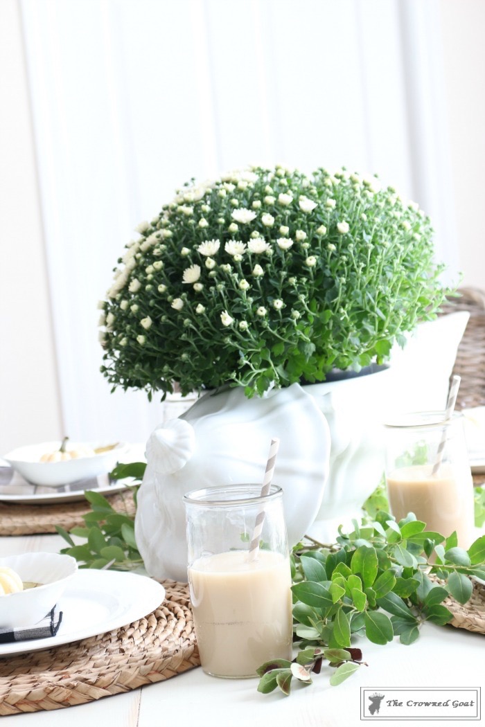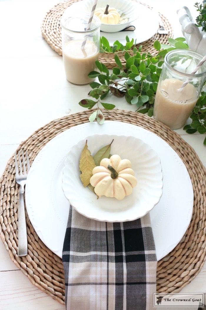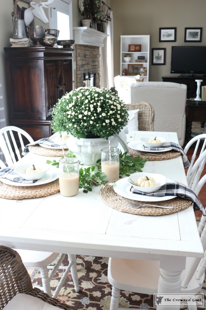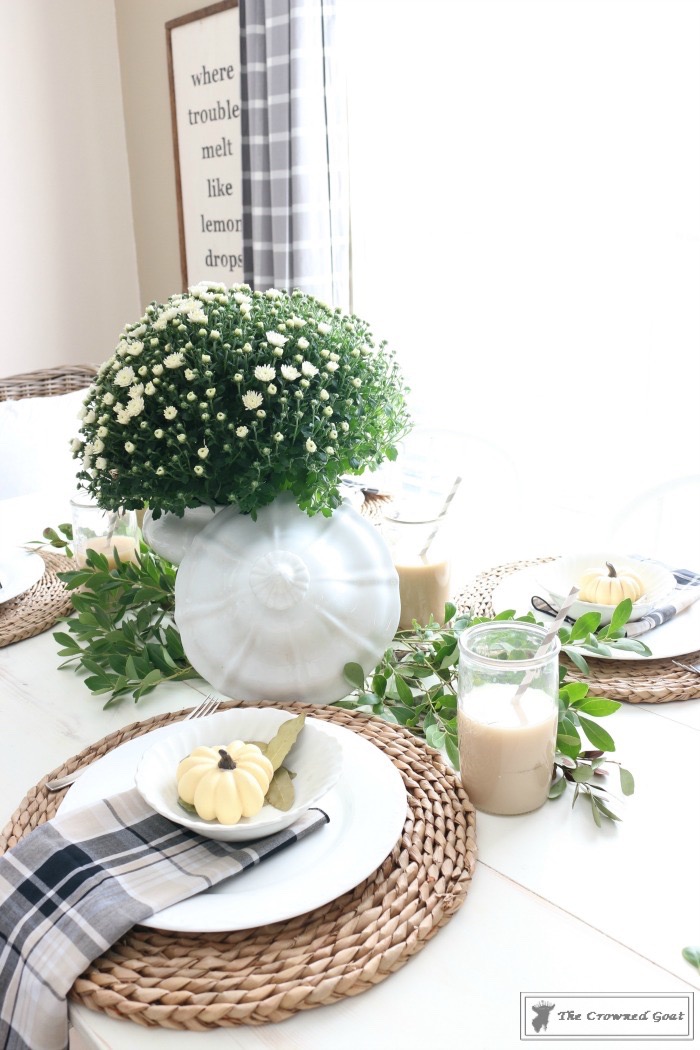 Take the elements you’re most excited about (mums, white pumpkins, plaids, layered china for me) and mix them up in a fresh but familiar way.