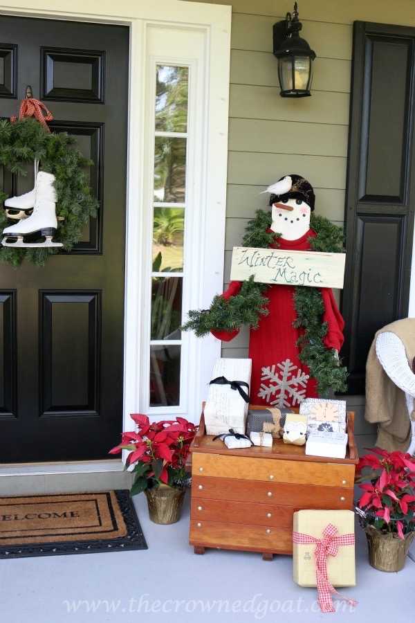 CoCo – you’ve done it again! Your Christmas porch is beautiful. The red is a fabulous color choice – it just pops and is so festive! Mr. Snowman is a perfect front door greeter. Well done – the porch looks fantastic!