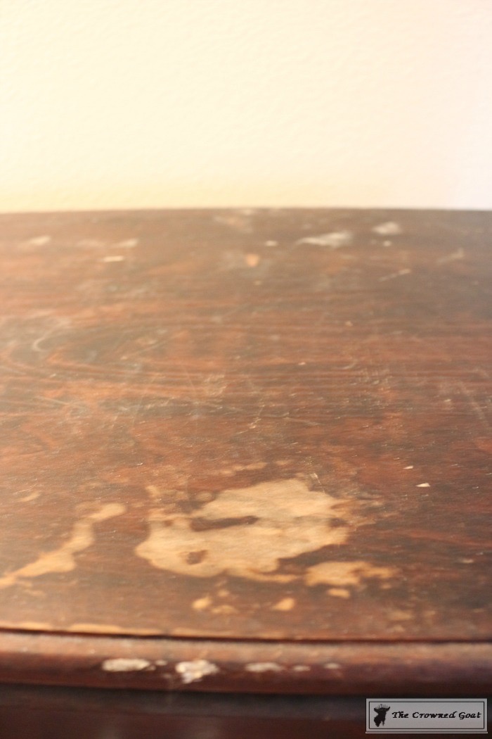 This dresser is not unlike a lot of the pieces we bring home. The drawers were in good working condition but the top had water rings and scratches. I had plans to paint the top but had I wanted to leave the woodgrain on the top natural like the sea gull gray milk paint buffet we recently finished, I would have needed to sand the water rings and the scratches out prior to restaining. I just wanted to throw that out there for all my farmhouse friends that love the look of a painted bottom and wood grain/natural top.