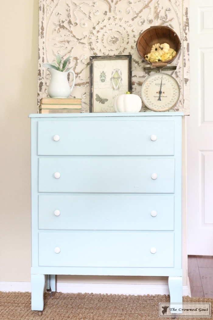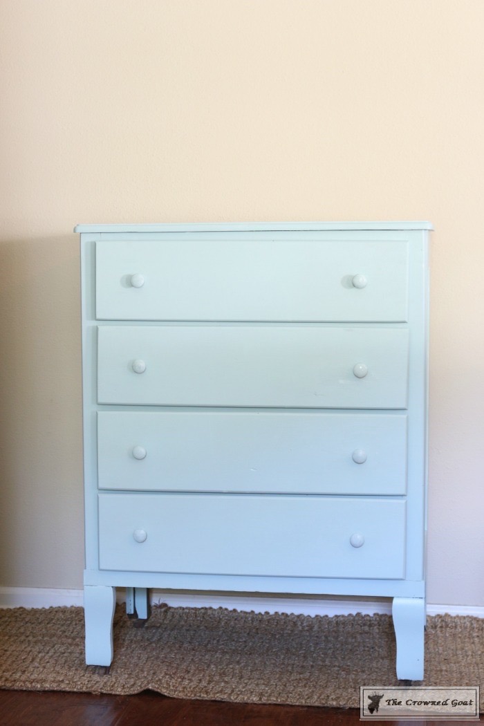 I used a custom mix of Annie Sloan Chalk Paint in Duck Egg + Pure White + a smidge of Country Gray to achieve the look of sea glass. As I’ve shared with you guys before, most of my customers at The Pickers Market have homes that are coastal, water and nautical inspired. This is after two coats of paint.