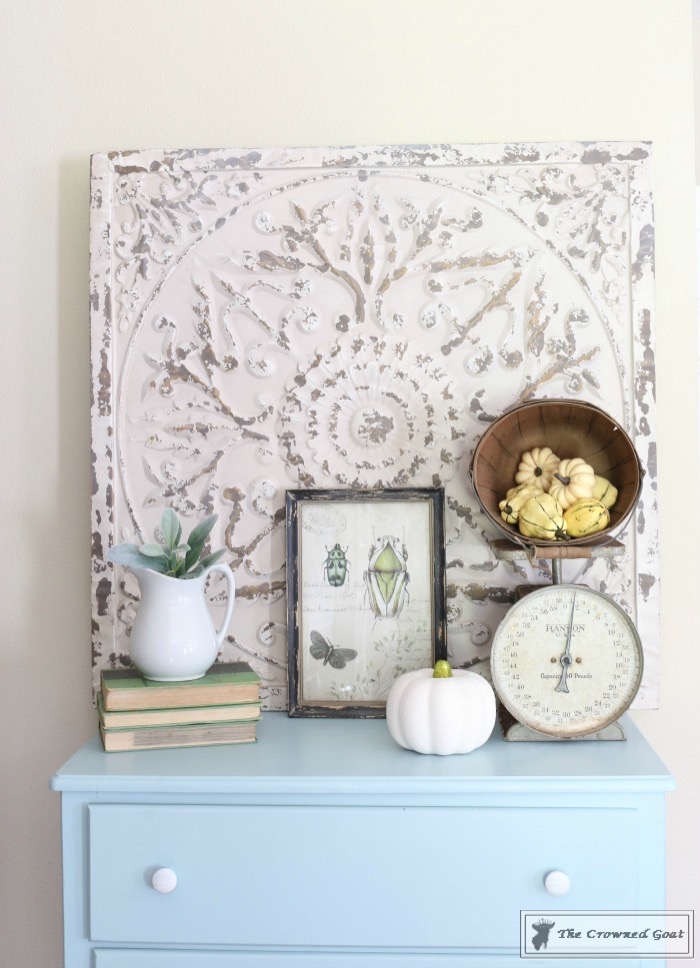 I found the big metal piece at Kirkland’s earlier this year. Everything else has been thrifted and collected over time.