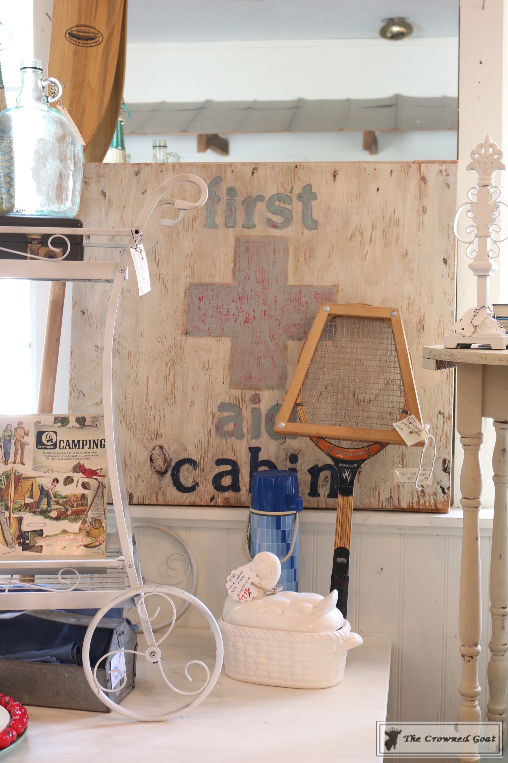 After the craft or chalk paint on the lettering and cross has completely dried, sand the entire sign with 120 grit sandpaper and add a layer of dark wax if you want to create an aged look. Here’s a look at a classic First Aid Cabin sign…