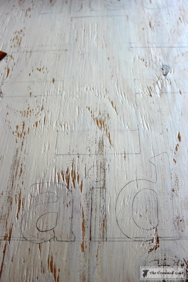 After the paint was dry, I used a ruler to draw the cross and stencils to create the lettering.