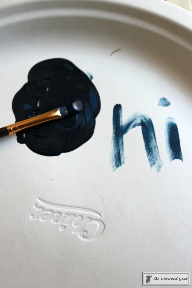 If you want to create a coastal cabin look you’ll use a mix of duck egg and pure white for the top lettering and a mix of paris grey and pure white for the cross. Just mix the colors with a paintbrush on a paper plate layering one color after the other until you get the color you want.
