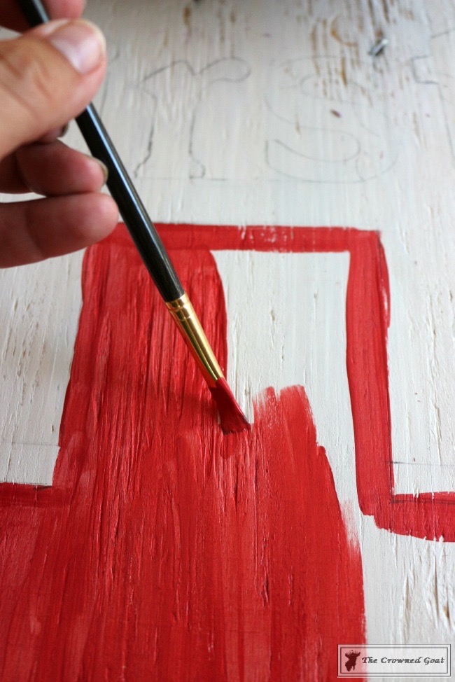 If you want to create a standard cabin look you’ll use a mix of primary red and country red craft paints. The color of the blue was created with primary blue and black.