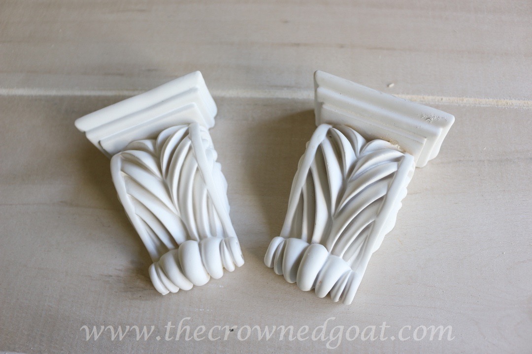 Originally, I wanted to place corbels on the ends of the bookcases. My dad even bought these, which I loved loved loved. He picked them out and everything all by himself.