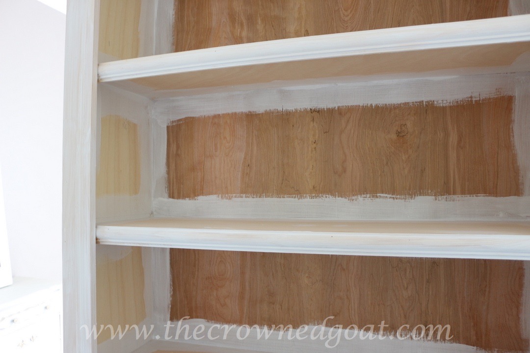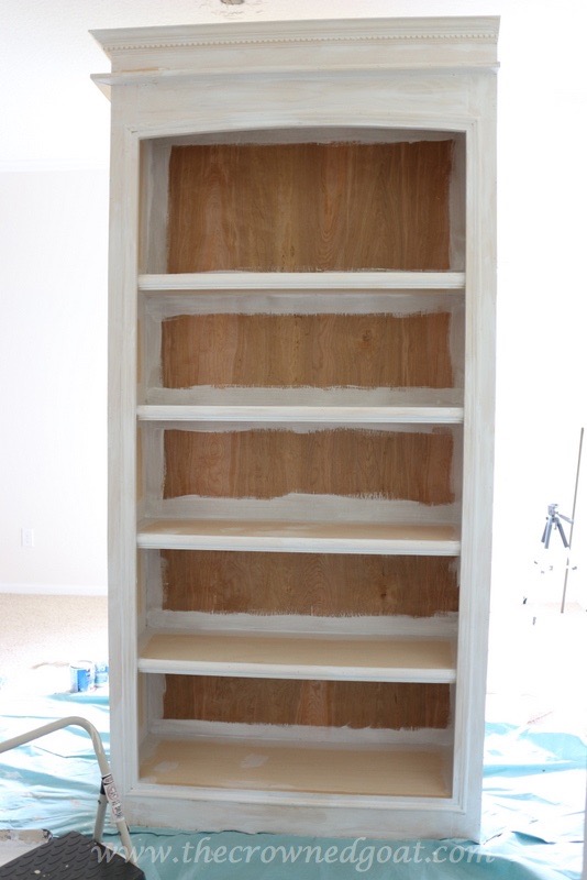 I decided to use the same strategy for painting the bookcases that I used for painting the textured walls…paint the edges first then paint the inside.
