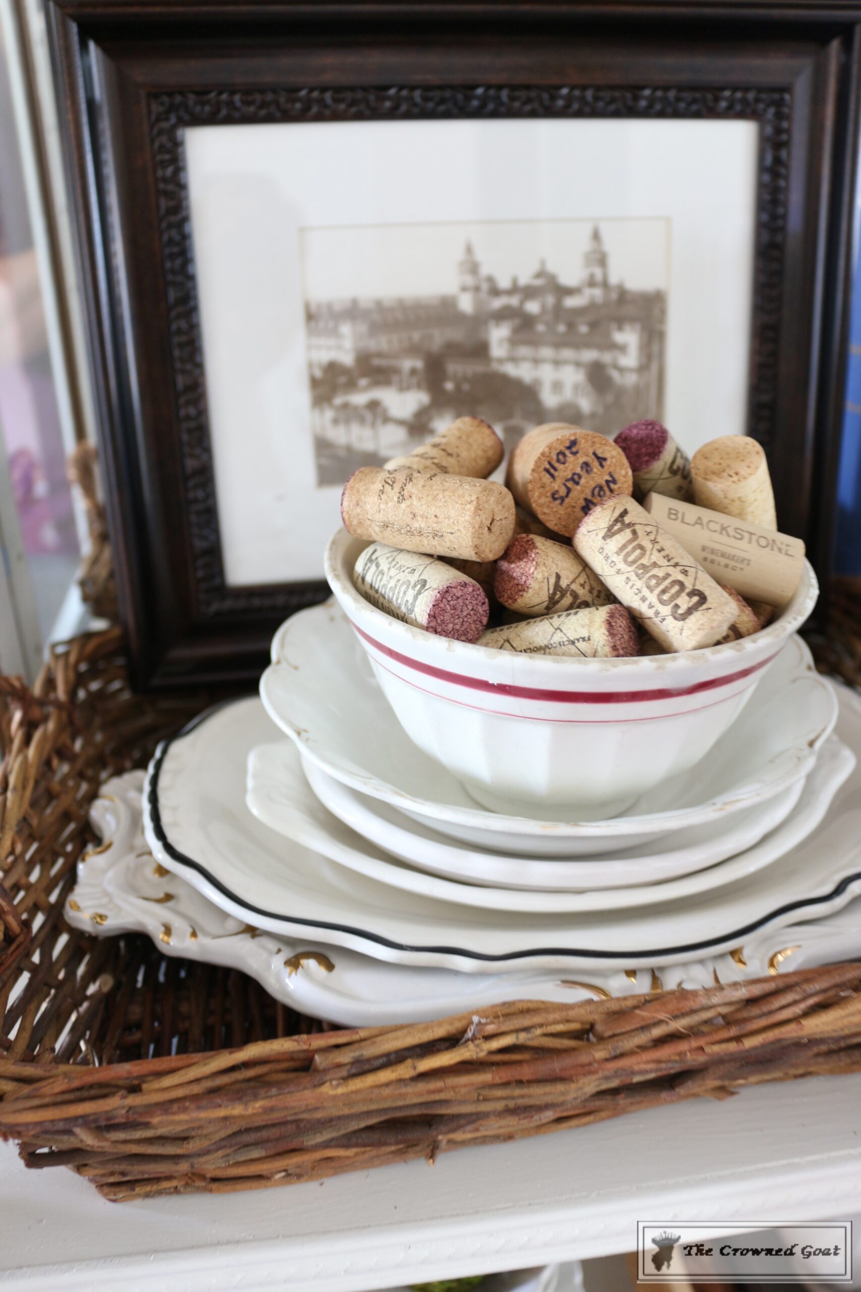Using fillers like corks will not only help preserve fun memories but will also help add texture to your shelves and vignettes.