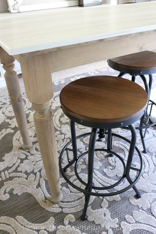 Remember last week when I couldn’t decide if I should add a gray wash to the barstools? It felt kind of weird to give brand new, just out of the box bar stools a makeover so I thought I would give it a few days to see if the darker wood would grow on me. My mom said the wood on the barstools didn’t really bother her so I thought I should at least give it a chance.