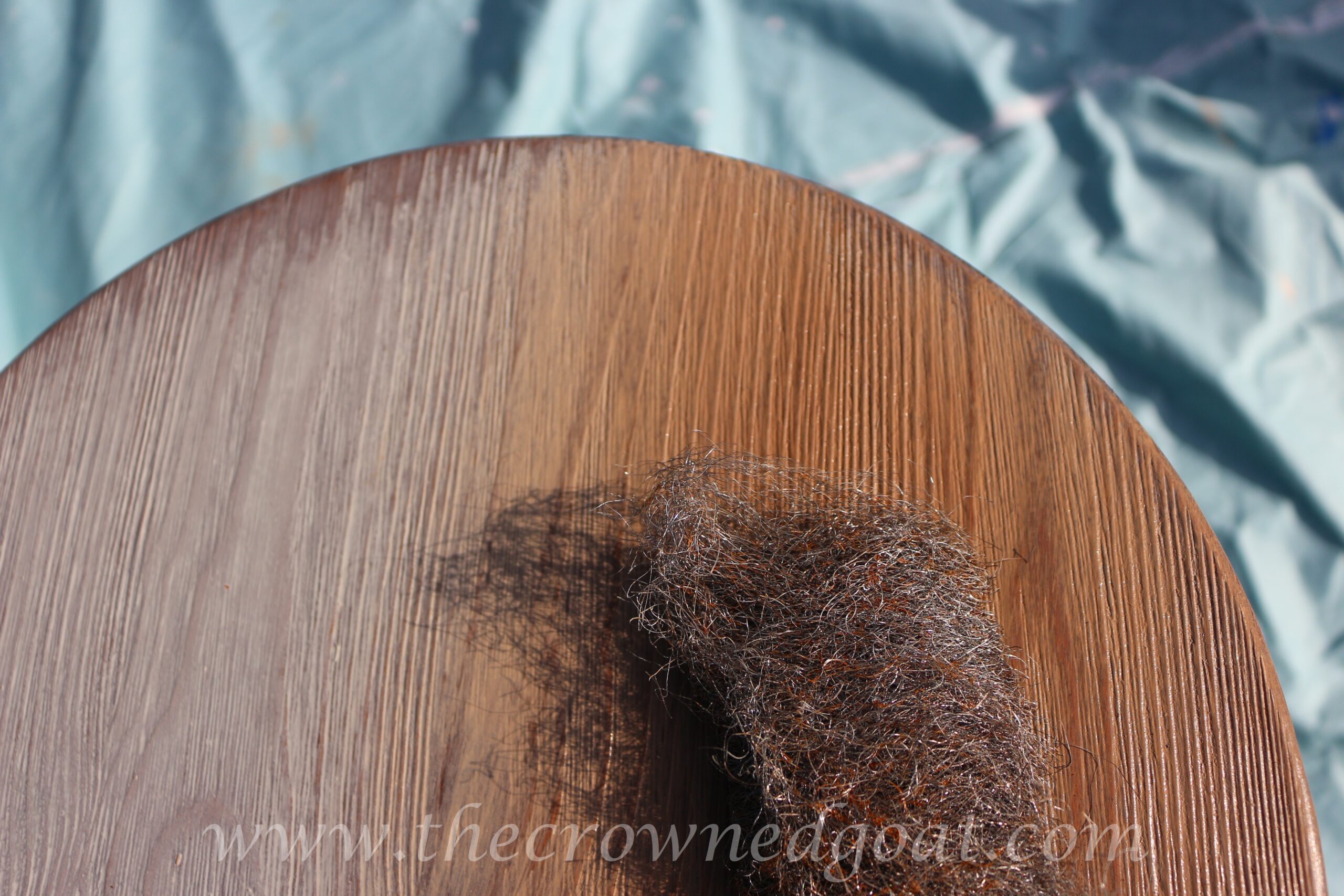 After a few minutes has passed you can either wipe the excess paint off with a lint free cloth or you can use a piece of steel wool to add a little extra patina. Make sure you protect your hands, face, clothes and surfaces if you choose to use steel wool.