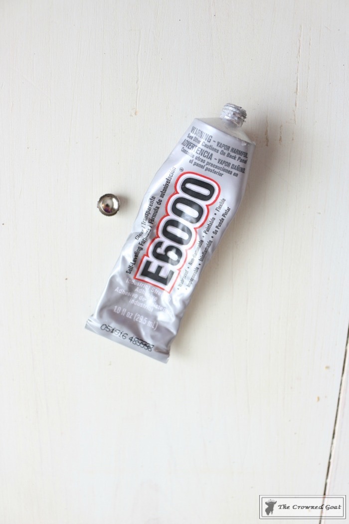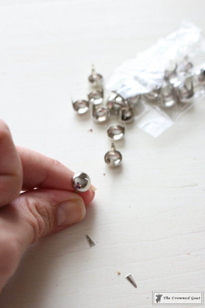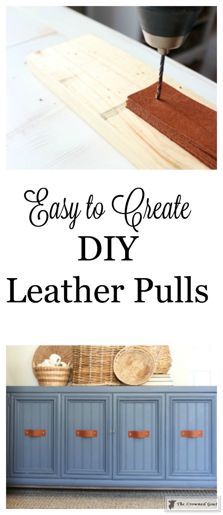 In an effort to give the leather pull a more finished look, we found silver caps in the beading and leather section of the craft supply store to place over the screws.