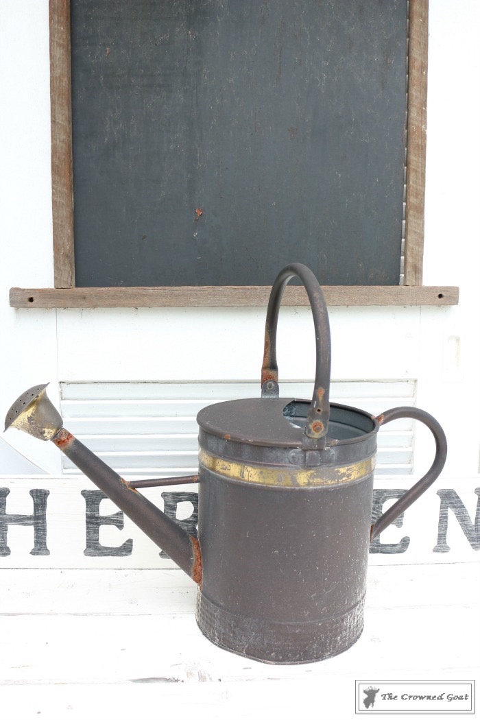 and placed them in the bottom of the watering can. On a total side note, always use caution and care any time you’re working around rust or metal items that are worn or weathered.