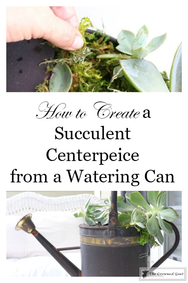 Once we got back home I set about creating an easy watering can succulent centerpiece which took mere minutes. Here’s a look at how you can create one for your porch, patio or as a gift to give away this summer too…