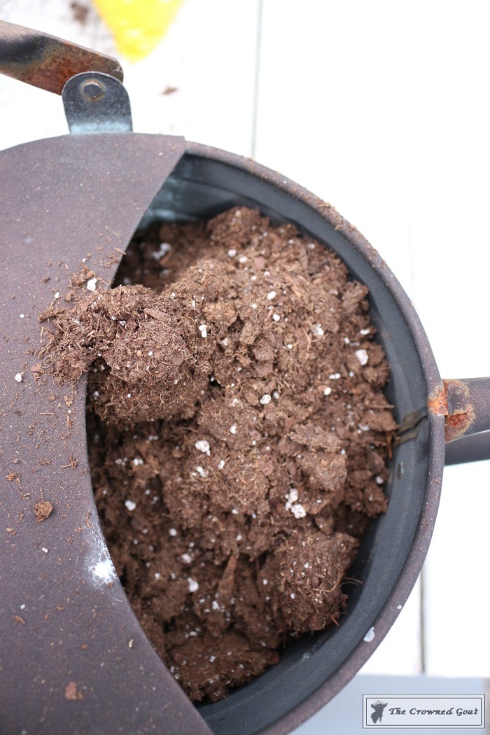 Next I added quality potting soil (we almost always use a Miracle-Gro product but you can also purchase soil specifically for succulents and cactus plants)