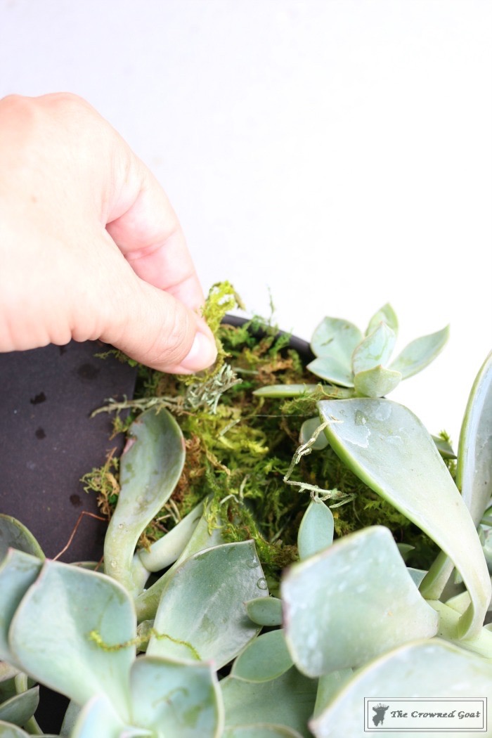 Add soil, rocks or moss around the top/rim as needed to fill in any empty spaces.