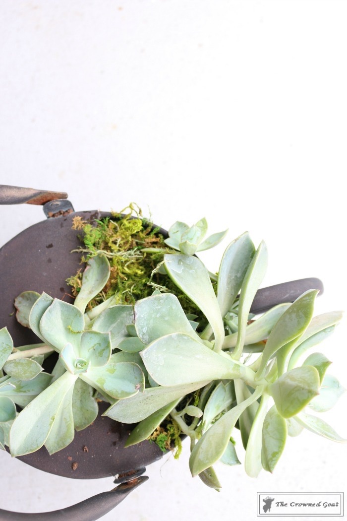 We’ll be using this watering can succulent container on the back patio but I’ve also created a similar succulent container for the master bathroom. I can’t wait to see how they fair indoors vs out. I’ll keep you posted!