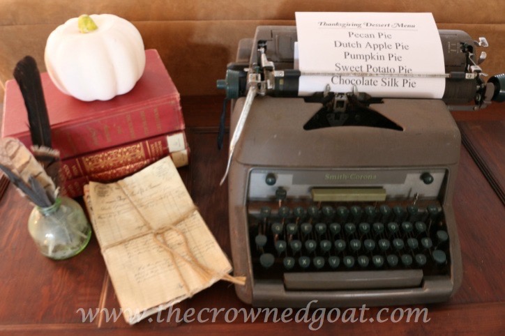 Normally this old typewriter holds one of my favorite quotes but it can easily act as a place to find the Thanksgiving menu, planned family activities or a gratitude list to welcome guests.