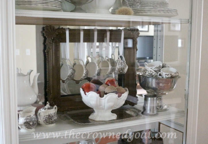 As you guys have probably already figured out, I have a brown and white transferware obsession. I usually leave this vignette out all year because it’s so neutral. If you have Thanksgiving or other holiday inspired dishes consider using an old frame and trophy cup to help display your favorite pieces.