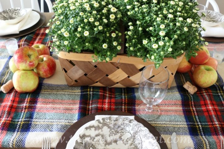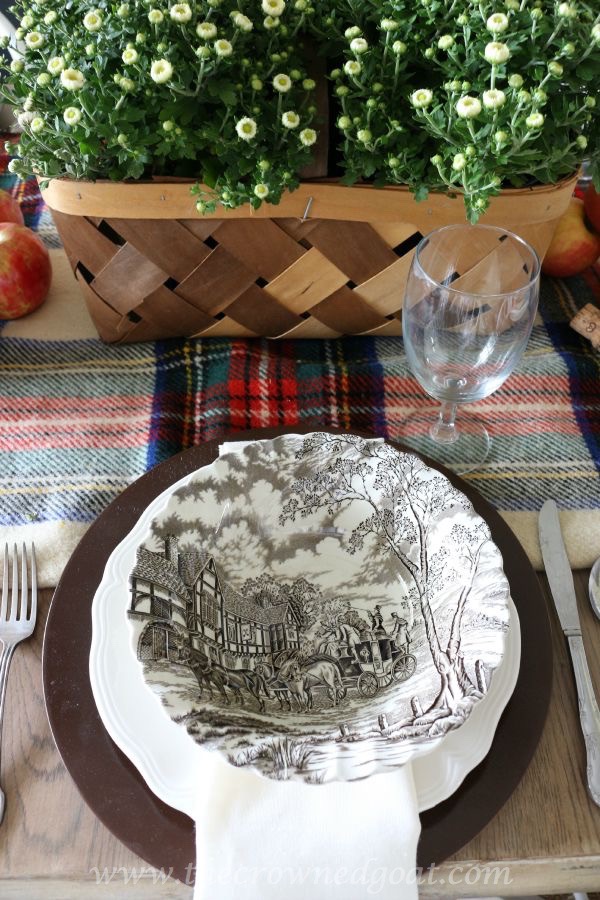 I can see why brown transferware is your favorite! It is the perfect fit for your fall table. Plaid blankets, apples, and mums, you’ve hit all the fall high notes! Thank you for sharing!