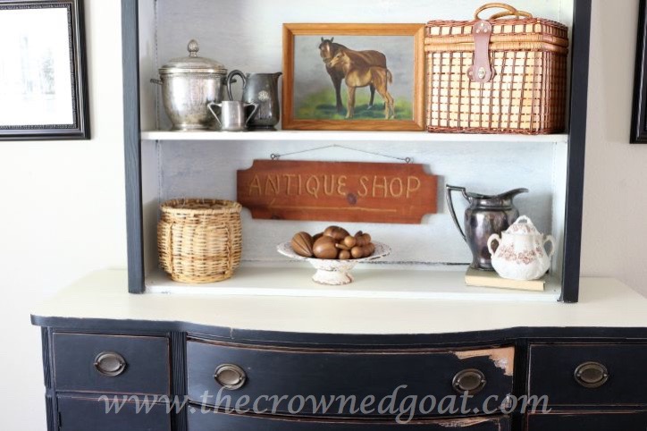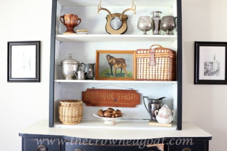Once the table was in place I started working on the china hutch. I would love to say, I whipped it out in an hour but the reality is that it took half the day to come together. I kept switching things out over and over until I was satisfied.