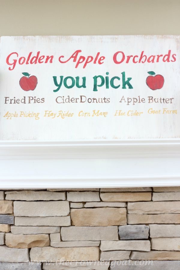 At first, I couldn’t decide where I wanted to use the sign. I thought about setting it up outside and using it on the one of the porches. But then I finally decided to try it on the mantel and it’s been there ever since.