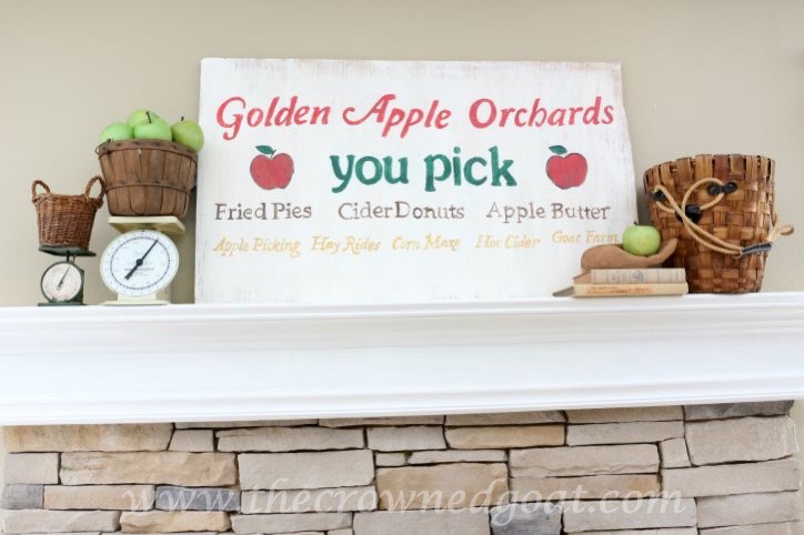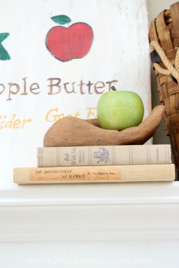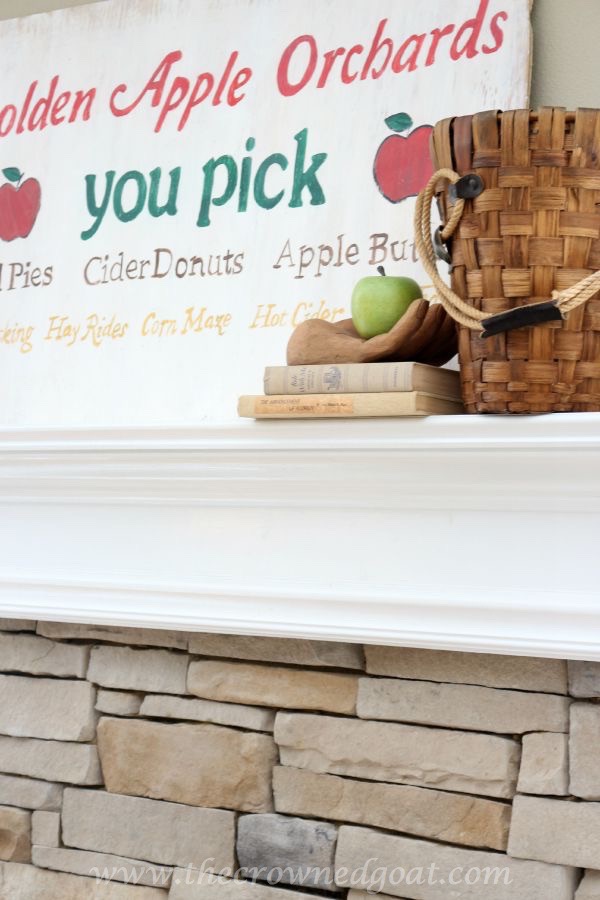 Once I finished this vintage inspired apple picking sign, I knew I would use apples throughout the house as part of my fall décor. As I’ve shared in the past, we don’t have a lot of storage room in the attic for decorations. So, this was the perfect opportunity to take advantage of seasonal fruits that could serve as décor.