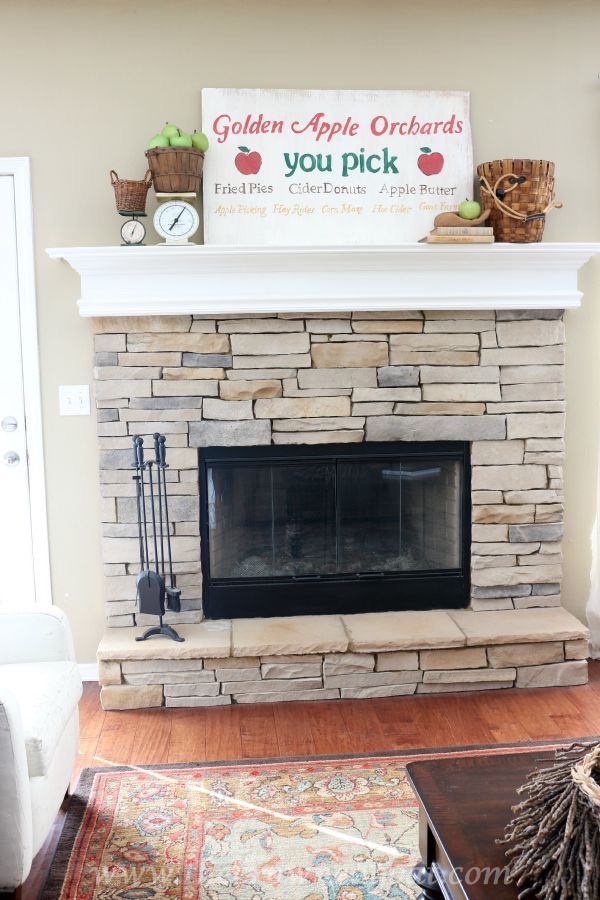 CoCo – Your Fall mantel decor is fantastic. We love the apple inspired theme. Your hand-painted sign is getting its due praise as the centerpiece of the mantel. We can tell a lot of time went into creating this beauty.We would never let go of the wooden hand either…ever. The single apple in the hand is so cute! Thanks for sharing your great ideas! We hear Country Living in the driveway!