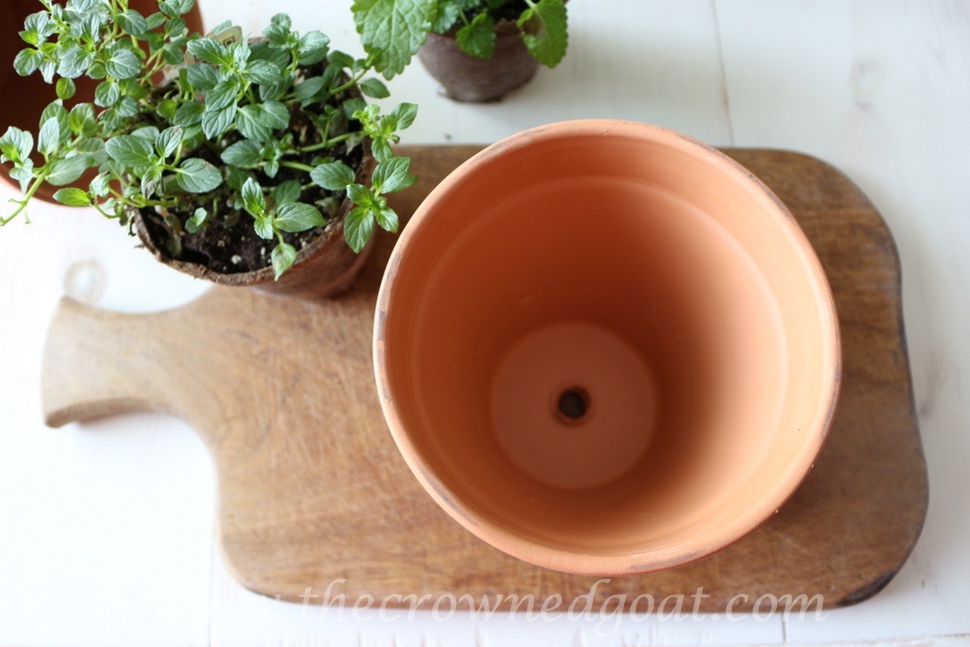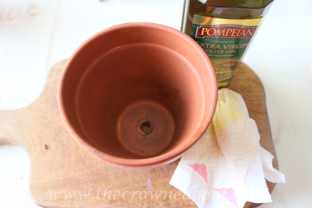 Once the flower pots are clean and dry, wipe the inside of the flower pot with olive oil.