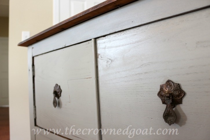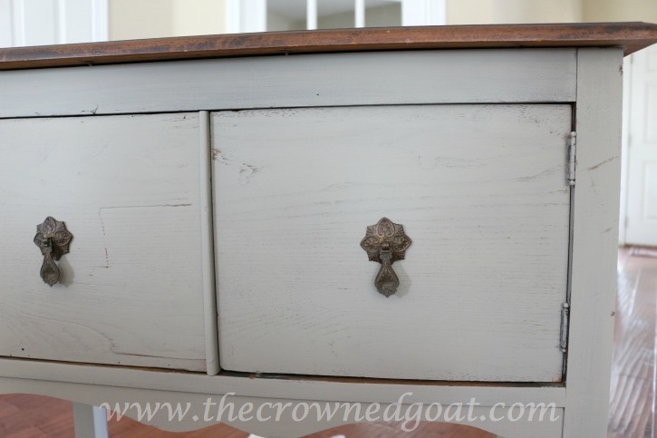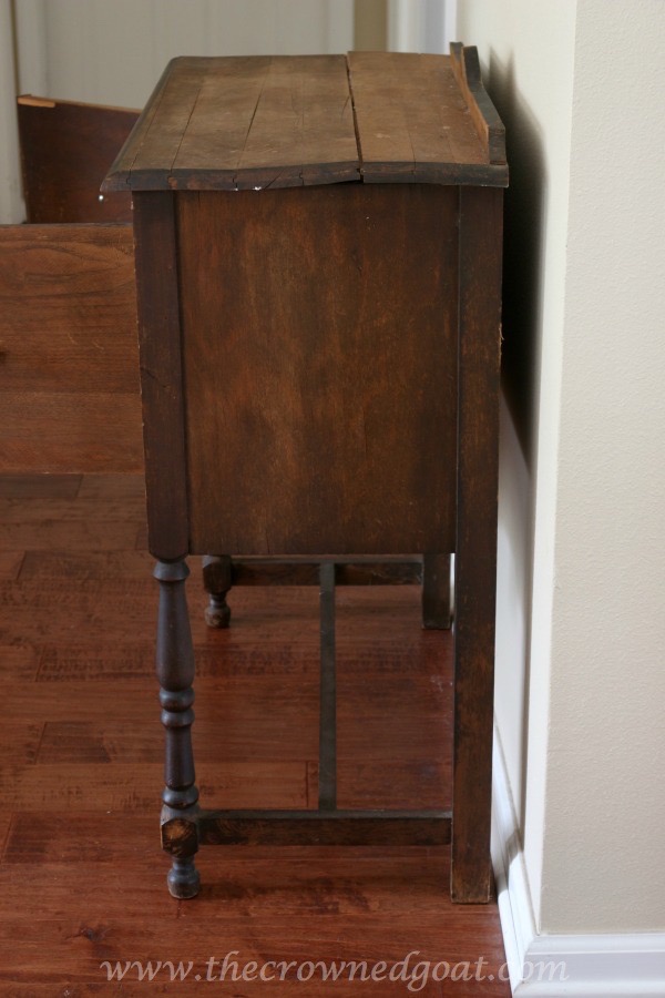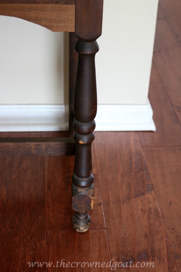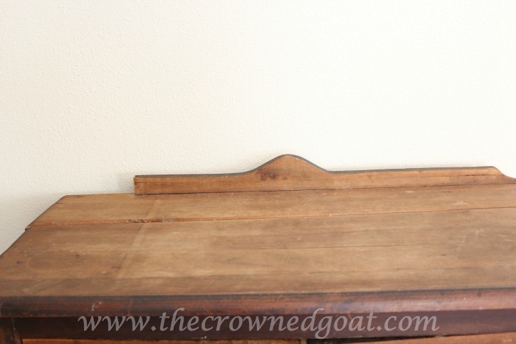 I used Howard’s Feed and Wax to help me revive the top. We’ll still need to secure the loose plank on top.