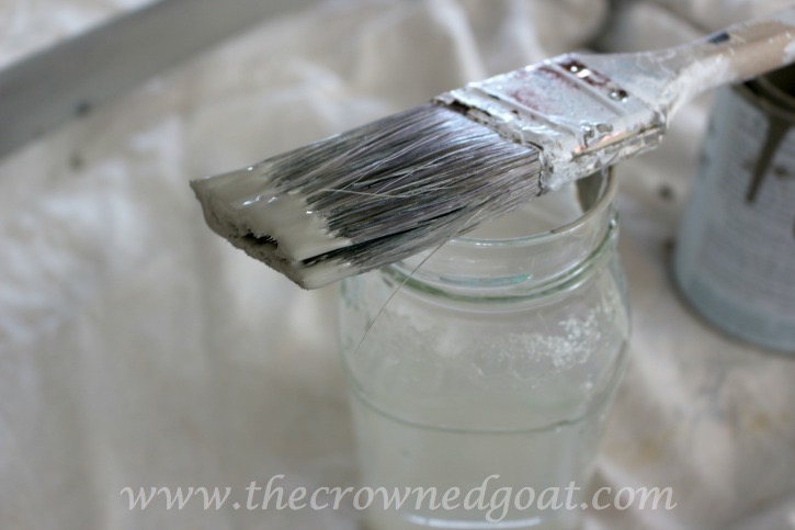 Step 2: Make sure you’re using a good quality brush. I almost always use Purdy brushes. They’re a little more expensive than other brushes but the quality and durability are worth it to me. I usually keep a jar or cup of water close each time I’m painting. I dip my paintbrush in water so that it’s slightly damp (not soaking wet) and then dip my brush into the chalk paint. I thin the chalk paint with water, just a little (think pancake batter not crepe batter.)