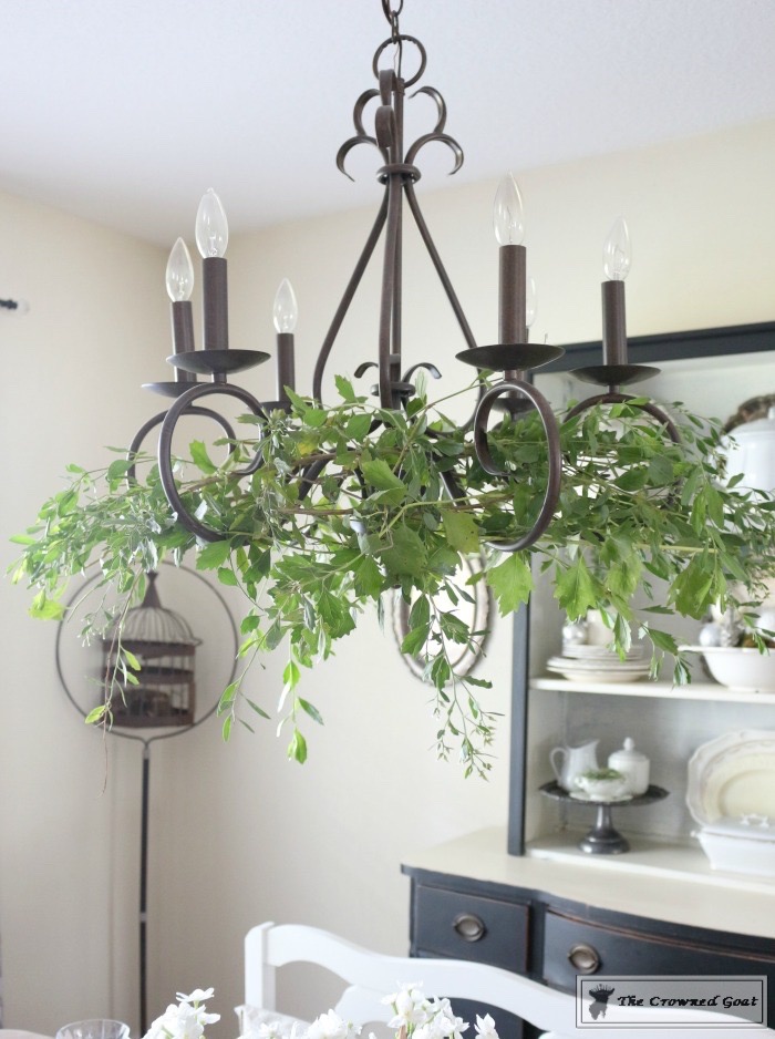 Adding Holiday Greenery to Simple Chandelier
