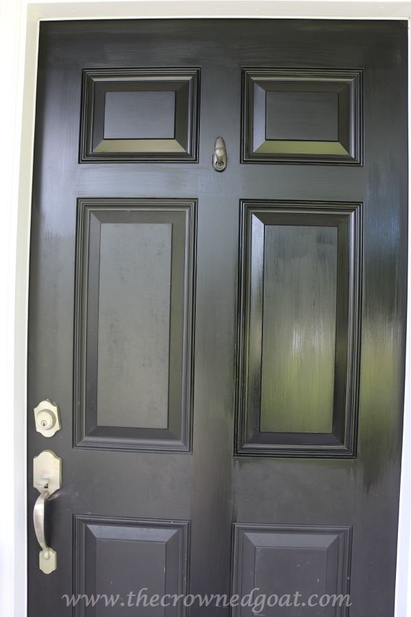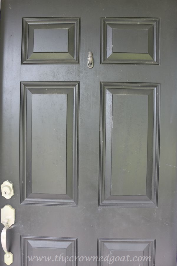 We used two full coverage coats of the Front Door Paint allowing for proper drying time between each coat and I have to say, our door looks like a brand new door. Just a reminder, this is how our front door looked a few weeks ago