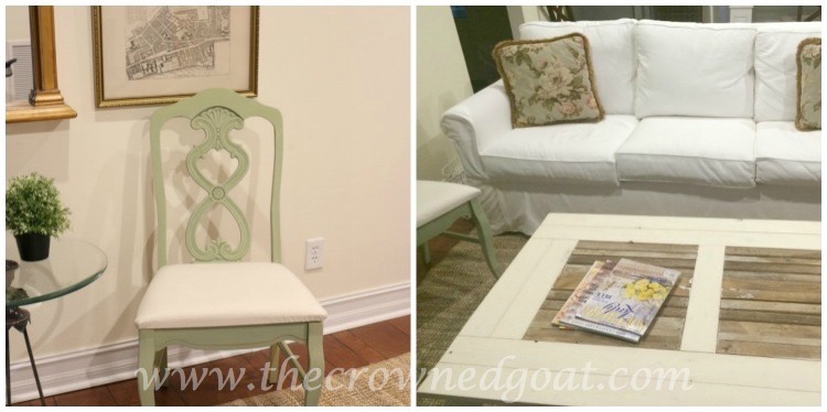 The living room also got an update with these Lucketts Green Painted Chairs and the Coffee Table made from reclaimed wood and a frame S found on the side of the road.