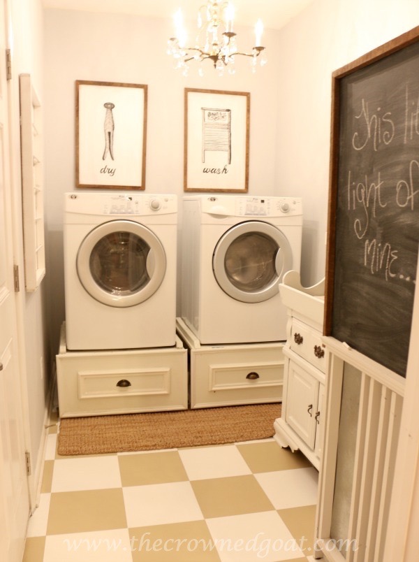 The biggest project we complete this month was the laundry room. We made art, painted the floor, repurposed an old dry sink as a folding station, painted the walls and hung a new light.
