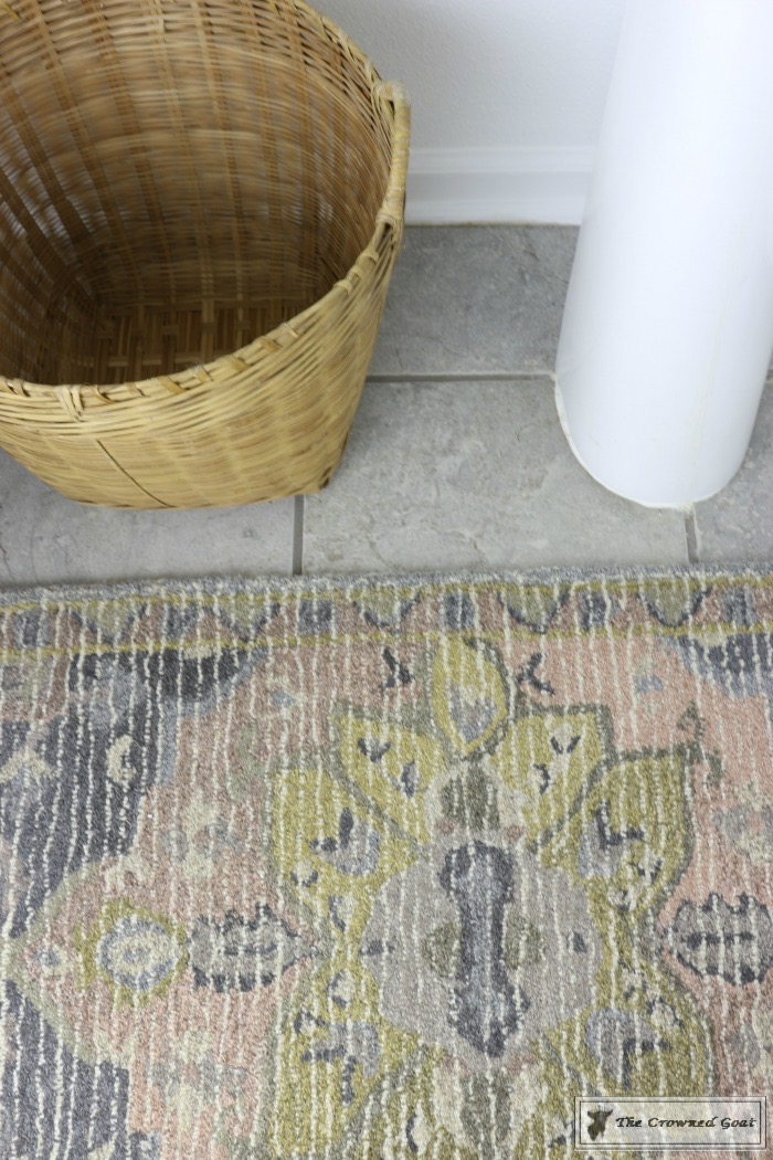 Those moments of panic led me to start researching new vanity lights and sink hardware. I found a rug with more color and bought wood and wicker accessories to help warm the space up.