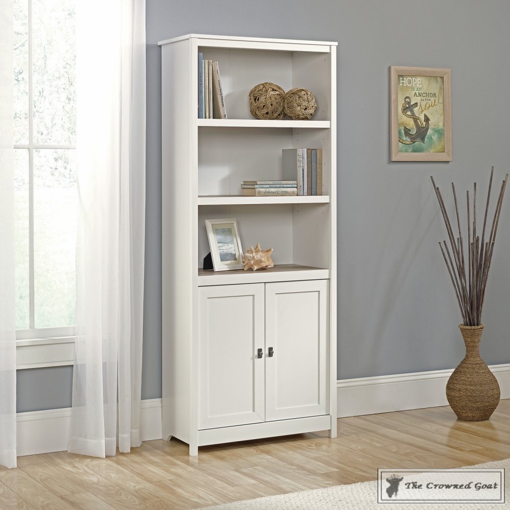 Our number one goal for this space is to make it more functional. It completely lacked storage options (think no closet) so I’m hoping we can find some closed storage bookcases similar to these but a little more substantial for the 9 foot ceilings. There will be a lot of electronic devices in this space so functional storage that is also pretty is a must.