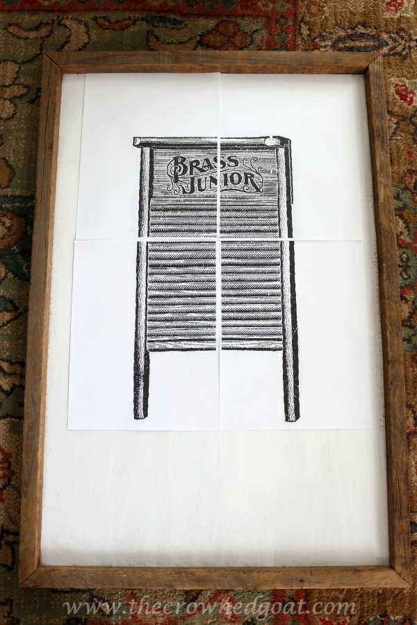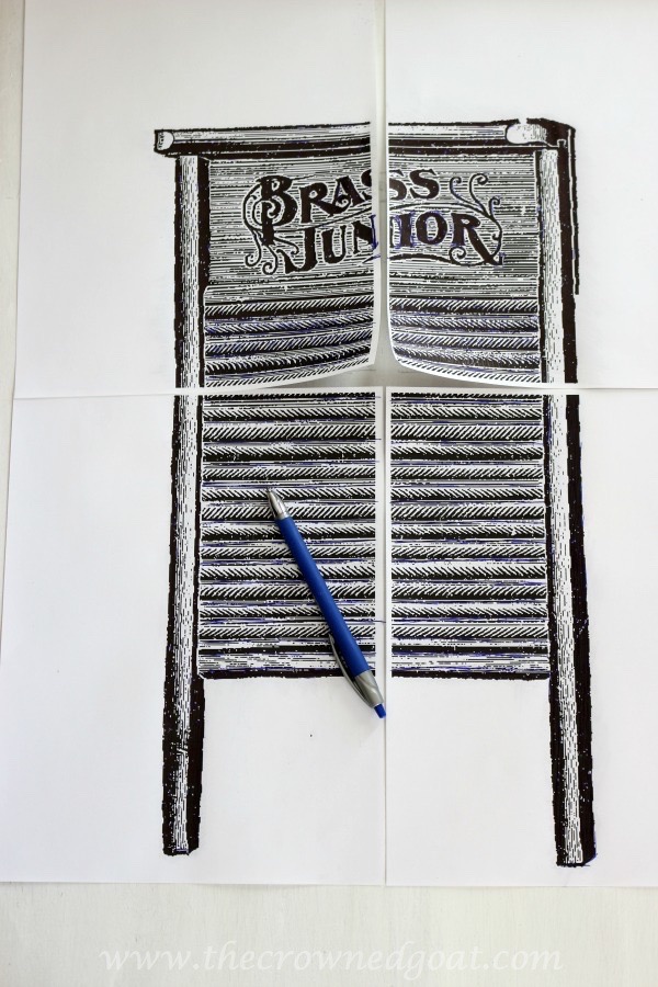 Once I got home, I printed out the laundry room graphics I wanted to use on my home computer. You can find the washboard here and the wooden peg here. I used the techniques found in this post from those genius ladies of Canary Street Crafts to complete the rest of the project. Those ladies are like queens of painted furniture graphics and super sweet too!