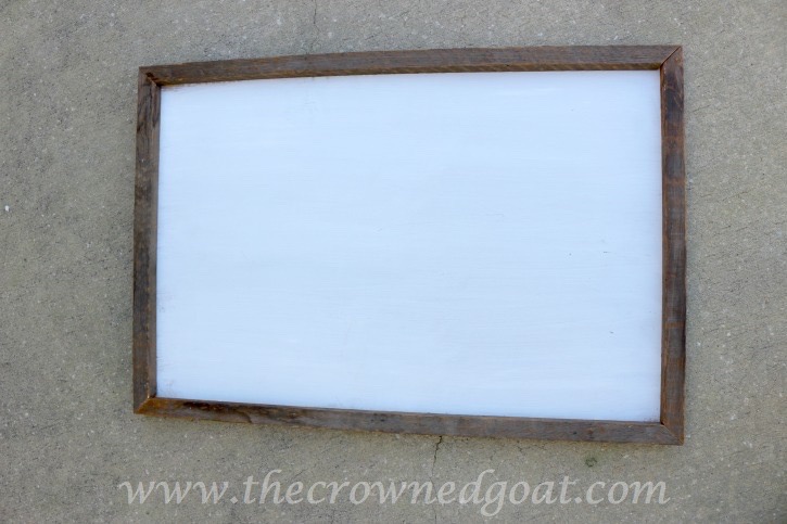 We placed the white painted board face down and secured the tobacco sticks, one corner at a time, first with wood glue and followed by nails and a nail gun.
